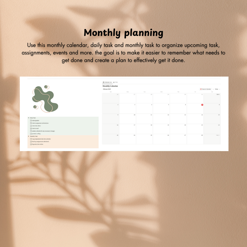📖 Weekly & Monthly Study Planner – Plan your study sessions and stay ahead of your coursework.