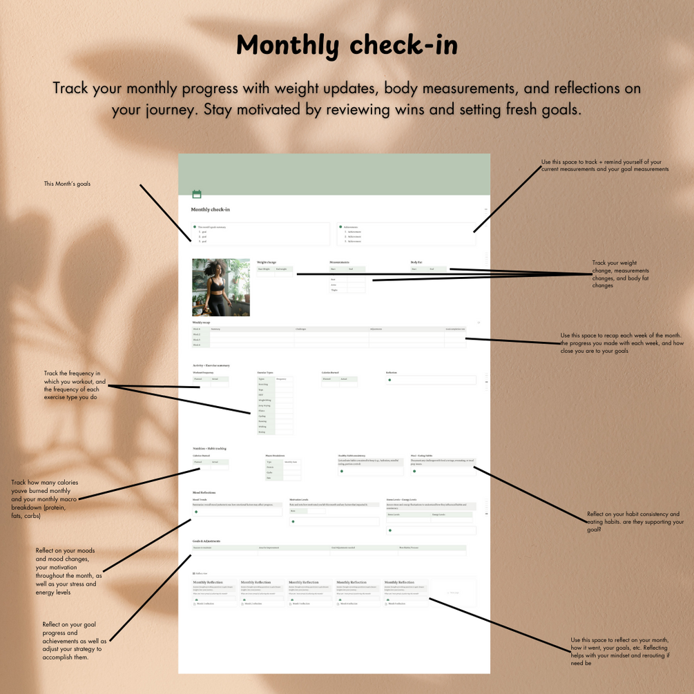 - 📆 Monthly Check-In Page – Review overall progress and set new goals for the month.